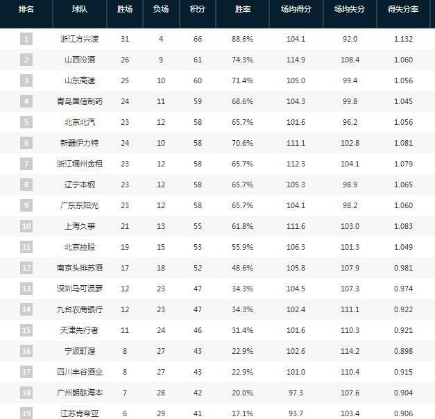 四强格局稳固,山西男篮稳居第二